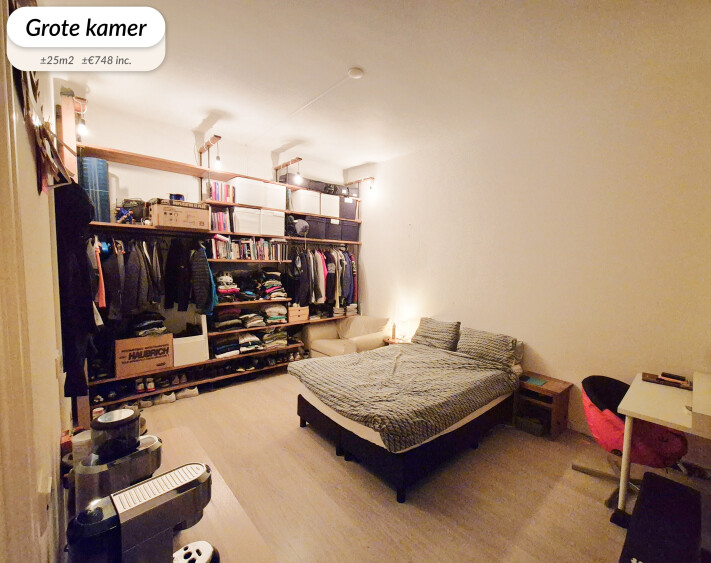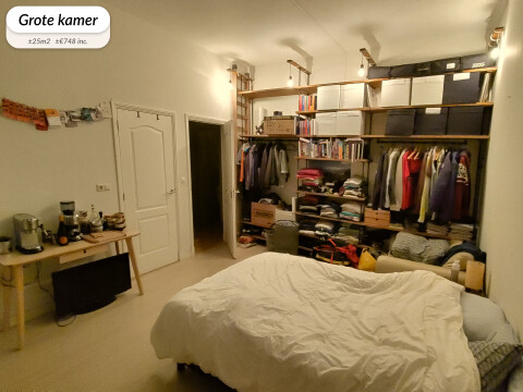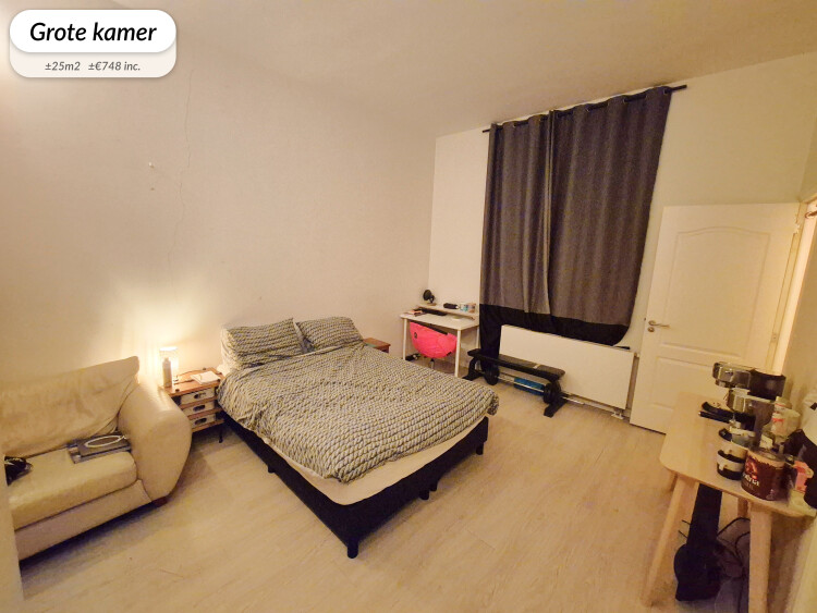 - De grote kamer is ±25m2 groot en heeft een eigen badkamer. Een huur van ±€748 incl.