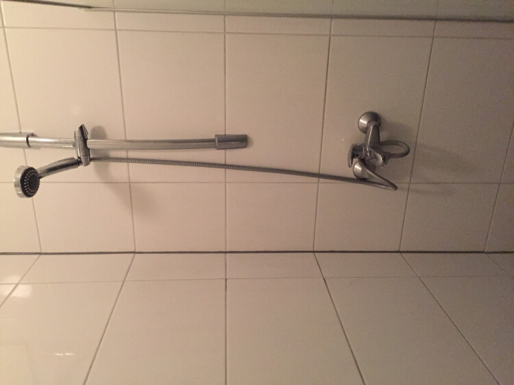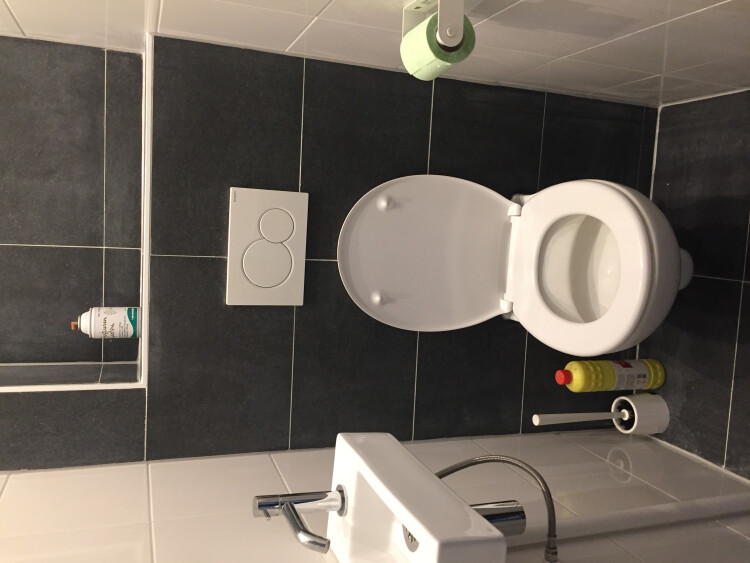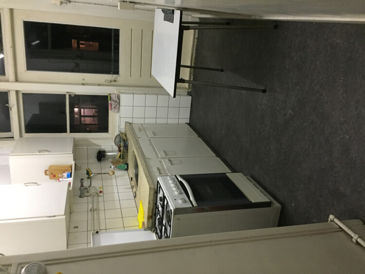 De badkamer, keuken, apart toilet (pas gerenoveerd) en balkon zijn gedeeld met nu 2 andere huisgenoten. Er is geen woonkamer. De badkamer beschikt over een wastafel en douche.