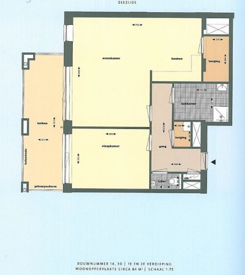 Toegang via gemeenschappelijk entree met lift. Woonkamer met open keuken met toegang naar ruim terras met riant uitzicht op de jachthaven, 1 slaapkamer, badkamer met ligbad en separate douche.