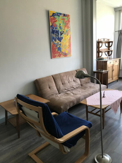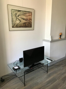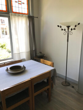 Een grote gemeubileerde kamer van ca. 30 m2 aan de Columbusstraat. De kamer zit op de eerste etage aan de tuinzijde met aangrenzend een eigen toilet en doucheruimte. Daarnaast op dezelfde etage een keuken welke gedeeld wordt met de hoofdbewoner/eigenaar. Alle voorzieningen op de foto’s i.e. wasmachine/koelkast/linnenkast/huishoudartikelen zijn ook bruikbaar voor de huurder. De bank op de foto is een slaapbank.